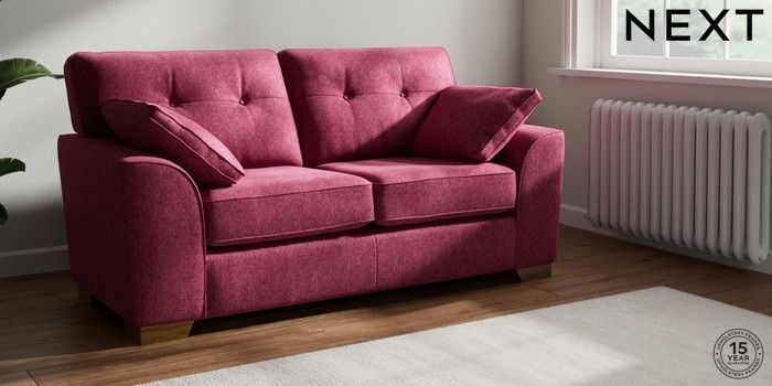7.2.10 Buy Stamford Buttoned Back Sofa Bed Cotswold Chenille Dark Raspberry Pink Large Square Angle - Brushed Brass from the Seasons online shop Click here to use our website with more accessibility support, for example screen readers