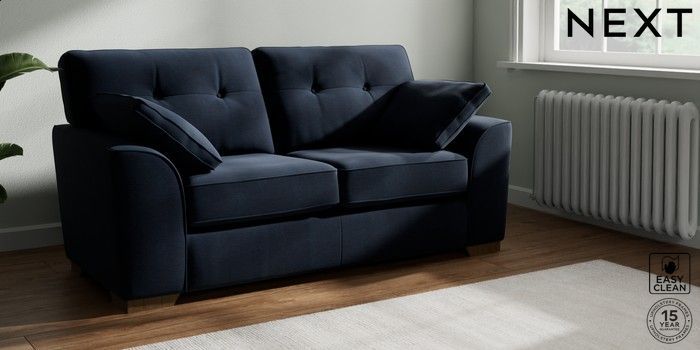 7.2.10 Buy Stamford Buttoned Back Sofa Bed Fine Chenille Easy Clean Dark Navy Blue Large Square Angle - Mid from the Seasons online shop Click here to use our website with more accessibility support, for example screen readers