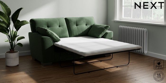 Bring timeless charm and ultimate family comfort to your home with the Stamford Buttoned sofa. Its large size and plush bolster cushions make it ideal for cosying up on. The "Firmer Sit" seat cushions provide exceptional support and durability, always returning to their tailored shape. These low-maintenance, reversible cushions are designed for lasting good looks. Personalise your Stamford Buttoned by picking from a vast selection of fabrics and various feet options. This range has a sofa bed. Sofa beds are a practical and comfortable addition to any home, big or small. Our sofa beds are pull-out beds containing a separate 6cm occasional foam mattress. This pull-out mechanism is concealed underneath the main cushions. We have sofa beds across multiple ranges, but they all are 120cm in width and 180cm in length, so we suggest a double duvet and a double flat sheet to dress your sofa bed.