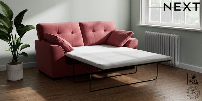 Bring timeless charm and ultimate family comfort to your home with the Stamford Buttoned sofa. Its large size and plush bolster cushions make it ideal for cosying up on. The "Firmer Sit" seat cushions provide exceptional support and durability, always returning to their tailored shape. These low-maintenance, reversible cushions are designed for lasting good looks. Personalise your Stamford Buttoned by picking from a vast selection of fabrics and various feet options. This range has a sofa bed. Sofa beds are a practical and comfortable addition to any home, big or small. Our sofa beds are pull-out beds containing a separate 6cm occasional foam mattress. This pull-out mechanism is concealed underneath the main cushions. We have sofa beds across multiple ranges, but they all are 120cm in width and 180cm in length, so we suggest a double duvet and a double flat sheet to dress your sofa bed.