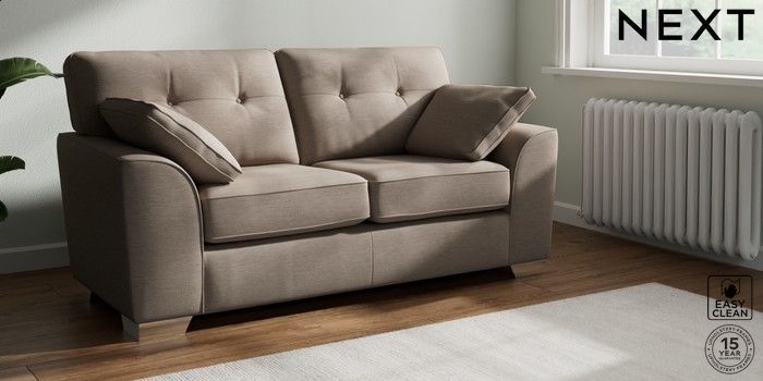 7.3.1 Buy Stamford Buttoned Back Sofa Bed Fine Chenille Easy Clean Mid Taupe Brown Large Square Angle - Chrome Metal from the Seasons online shop Click here to use our website with more accessibility support, for example screen readers