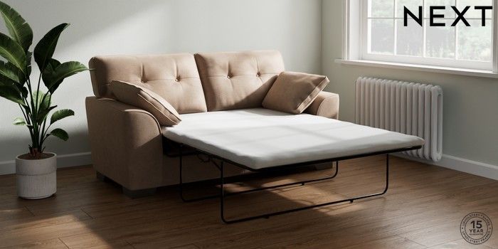 Bring timeless charm and ultimate family comfort to your home with the Stamford Buttoned sofa. Its large size and plush bolster cushions make it ideal for cosying up on. The "Firmer Sit" seat cushions provide exceptional support and durability, always returning to their tailored shape. These low-maintenance, reversible cushions are designed for lasting good looks. Personalise your Stamford Buttoned by picking from a vast selection of fabrics and various feet options. This range has a sofa bed. Sofa beds are a practical and comfortable addition to any home, big or small. Our sofa beds are pull-out beds containing a separate 6cm occasional foam mattress. This pull-out mechanism is concealed underneath the main cushions. We have sofa beds across multiple ranges, but they all are 120cm in width and 180cm in length, so we suggest a double duvet and a double flat sheet to dress your sofa bed.