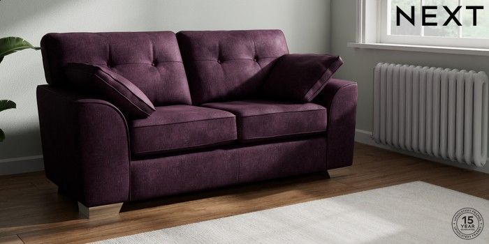 7.2.10 Buy Stamford Buttoned Back Sofa Bed Plush Chenille Dark Plum Purple Large Square Angle - Chrome Metal from the Seasons online shop Click here to use our website with more accessibility support, for example screen readers