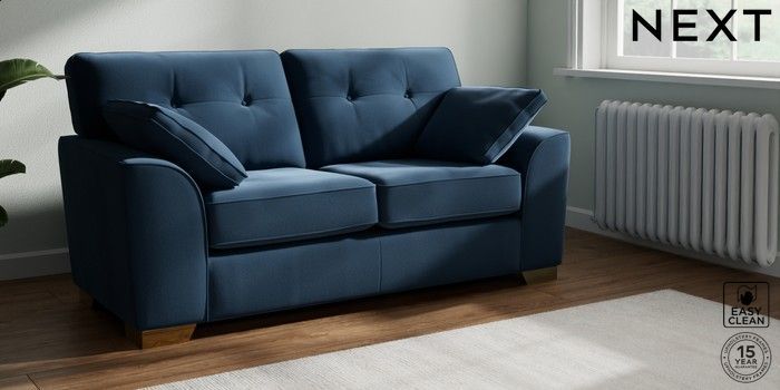 7.2.10 Buy Stamford Buttoned Back Sofa Bed Plush Velvet Easy Clean Airforce Blue Large Square Angle - Brushed Brass from the Seasons online shop Click here to use our website with more accessibility support, for example screen readers