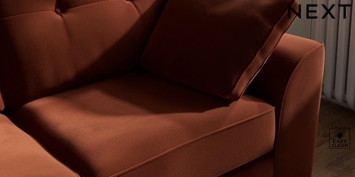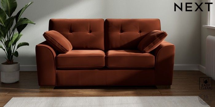 7.2.10 Buy Stamford Buttoned Back Sofa Bed Plush Velvet Easy Clean Ginger Orange Large Square Angle - Mid from the Seasons online shop Click here to use our website with more accessibility support, for example screen readers