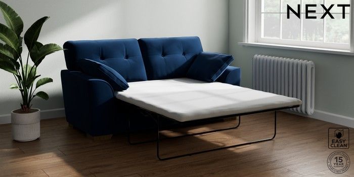 7.2.10 Buy Stamford Buttoned Back Sofa Bed Plush Velvet Easy Clean Navy Blue Large Square Angle - Mid from the Seasons online shop Click here to use our website with more accessibility support, for example screen readers