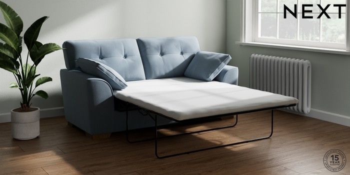 Bring timeless charm and ultimate family comfort to your home with the Stamford Buttoned sofa. Its large size and plush bolster cushions make it ideal for cosying up on. The "Firmer Sit" seat cushions provide exceptional support and durability, always returning to their tailored shape. These low-maintenance, reversible cushions are designed for lasting good looks. Personalise your Stamford Buttoned by picking from a vast selection of fabrics and various feet options. This range has a sofa bed. Sofa beds are a practical and comfortable addition to any home, big or small. Our sofa beds are pull-out beds containing a separate 6cm occasional foam mattress. This pull-out mechanism is concealed underneath the main cushions. We have sofa beds across multiple ranges, but they all are 120cm in width and 180cm in length, so we suggest a double duvet and a double flat sheet to dress your sofa bed.