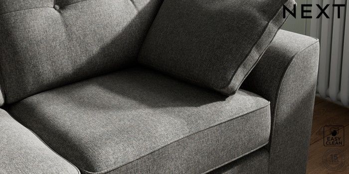 A chunky, hardwearing fabric with a timeless look which can tackle most household stains by blotting or gently wiping the fabric with water and a mild detergent. This Fabric is covered by the Quality Fabric Kitemark