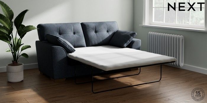 Bring timeless charm and ultimate family comfort to your home with the Stamford Buttoned sofa. Its large size and plush bolster cushions make it ideal for cosying up on. The "Firmer Sit" seat cushions provide exceptional support and durability, always returning to their tailored shape. These low-maintenance, reversible cushions are designed for lasting good looks. Personalise your Stamford Buttoned by picking from a vast selection of fabrics and various feet options. This range has a sofa bed. Sofa beds are a practical and comfortable addition to any home, big or small. Our sofa beds are pull-out beds containing a separate 6cm occasional foam mattress. This pull-out mechanism is concealed underneath the main cushions. We have sofa beds across multiple ranges, but they all are 120cm in width and 180cm in length, so we suggest a double duvet and a double flat sheet to dress your sofa bed.