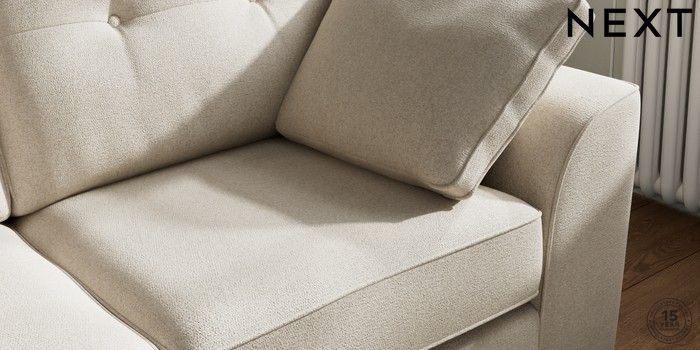 A chunky, hardwearing fabric with a timeless look which can tackle most household stains by blotting or gently wiping the fabric with water and a mild detergent. This Fabric is covered by the Quality Fabric Kitemark