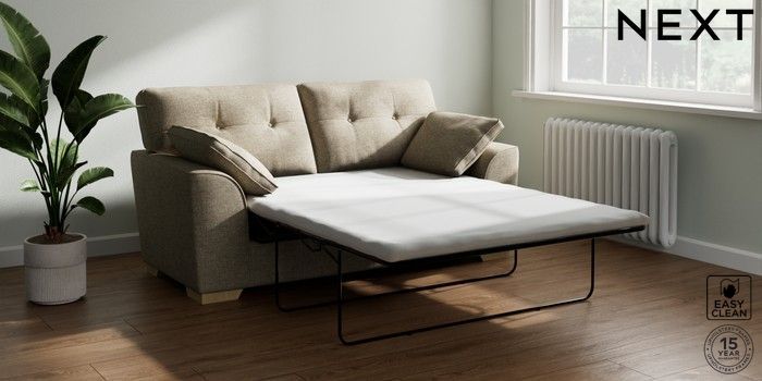 7.2.10 Buy Stamford Buttoned Back Sofa Bed Woven Chenille Easy Clean Mid Natural Large Square Angle - Light from the Seasons online shop Click here to use our website with more accessibility support, for example screen readers
