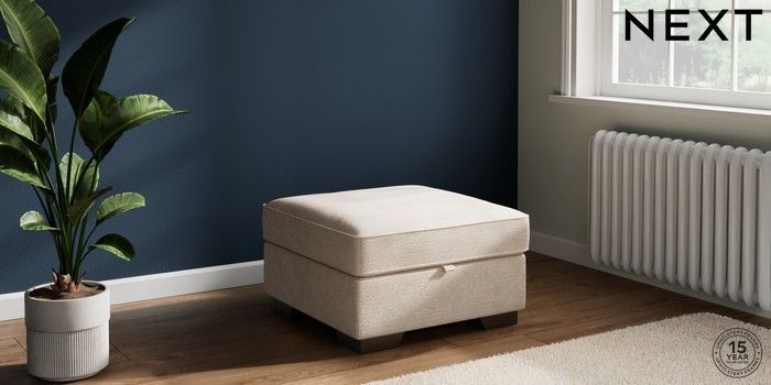 7.2.10 Buy Stamford Buttoned Back Storage Footstool Boucle Chenille Oyster Square Angle - Gunmetal from the Seasons online shop Click here to use our website with more accessibility support, for example screen readers