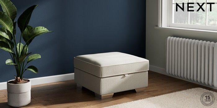 7.3.1 Buy Stamford Buttoned Back Storage Footstool Chenille Stripe Moss Green Square Angle - Chrome Metal from the Seasons online shop Click here to use our website with more accessibility support, for example screen readers