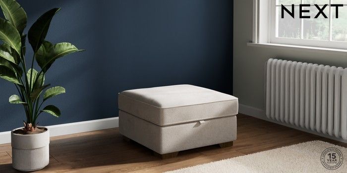 7.2.10 Buy Stamford Buttoned Back Storage Footstool Chunky Chenille Oyster Square Angle - Mid from the Seasons online shop Click here to use our website with more accessibility support, for example screen readers