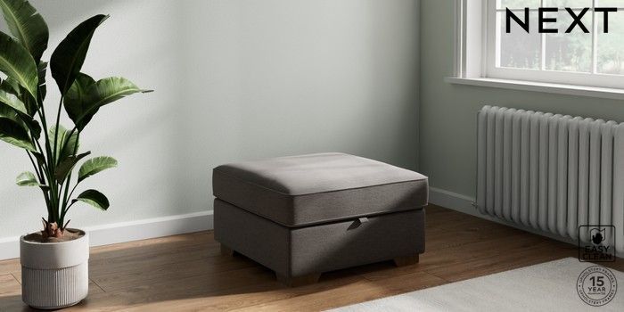 7.2.10 Buy Stamford Buttoned Back Storage Footstool Fine Chenille Easy Clean Dark Smoke Grey Square Angle - Mid from the Seasons online shop Click here to use our website with more accessibility support, for example screen readers