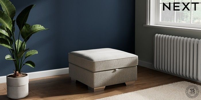 7.2.10 Buy Stamford Buttoned Back Storage Footstool Multi Weave Light Blue Square Angle - Chrome Metal from the Seasons online shop Click here to use our website with more accessibility support, for example screen readers