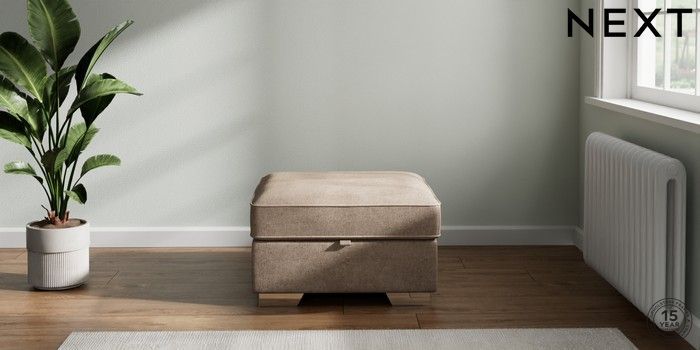 7.2.10 Buy Stamford Buttoned Back Storage Footstool Plush Chenille Mid Natural Square Angle - Chrome Metal from the Seasons online shop Click here to use our website with more accessibility support, for example screen readers
