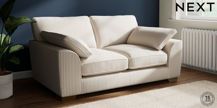 7.3.1 Buy Stamford Grand Relaxed Sit 2 Seater Sofa Chenille Stripe Natural Large Square Angle - Brushed Brass from the Seasons online shop Click here to use our website with more accessibility support, for example screen readers