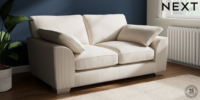 7.3.1 Buy Stamford Grand Relaxed Sit 2 Seater Sofa Chenille Stripe Natural Large Square Angle - Chrome Metal from the Seasons online shop Click here to use our website with more accessibility support, for example screen readers