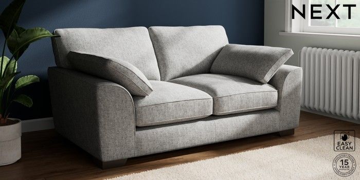 7.3.1 Buy Stamford Grand Relaxed Sit 2 Seater Sofa Chunky Boucle Easy Clean Light Grey Large Square Angle - Gunmetal from the Seasons online shop Click here to use our website with more accessibility support, for example screen readers