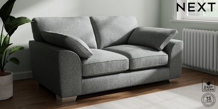 7.3.1 Buy Stamford Grand Relaxed Sit 2 Seater Sofa Chunky Boucle Easy Clean Mid Grey Large Square Angle - Chrome Metal from the Seasons online shop Click here to use our website with more accessibility support, for example screen readers