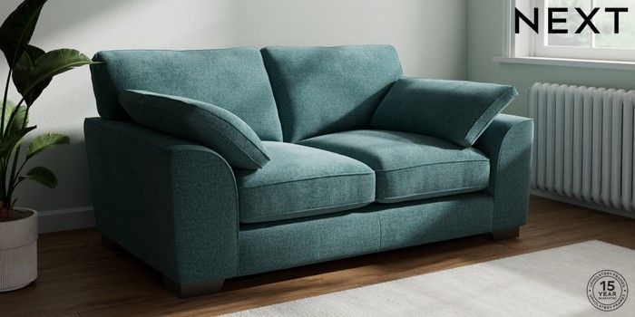 7.3.1 Buy Stamford Grand Relaxed Sit 2 Seater Sofa Chunky Chenille Mid Teal Green Large Square Angle - Gunmetal from the Seasons online shop Click here to use our website with more accessibility support, for example screen readers