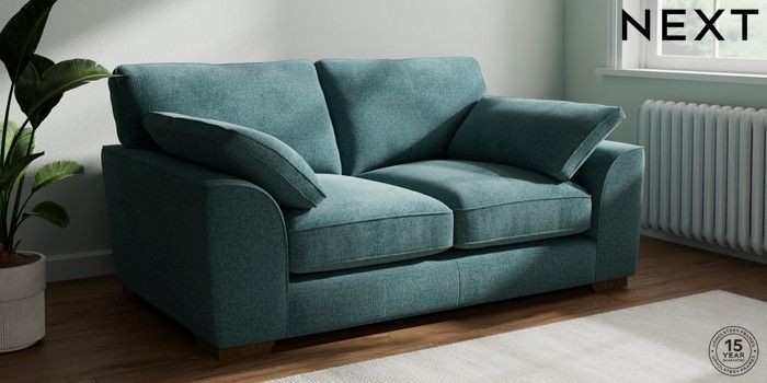 7.3.1 Buy Stamford Grand Relaxed Sit 2 Seater Sofa Chunky Chenille Mid Teal Green Large Square Angle - Mid from the Seasons online shop Click here to use our website with more accessibility support, for example screen readers