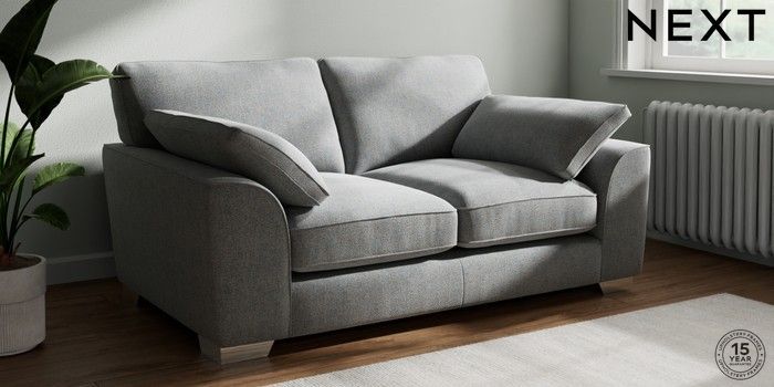 7.3.1 Buy Stamford Grand Relaxed Sit 2 Seater Sofa Chunky Marl Mid Grey Large Square Angle - Chrome Metal from the Seasons online shop Click here to use our website with more accessibility support, for example screen readers