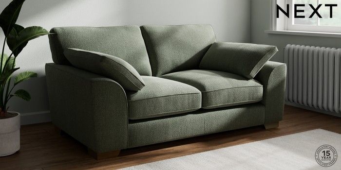 7.3.1 Buy Stamford Grand Relaxed Sit 2 Seater Sofa Chunky Texture Mid Forest Green Large Square Angle - Brushed Brass from the Seasons online shop Click here to use our website with more accessibility support, for example screen readers
