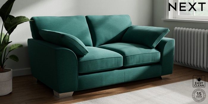 7.3.1 Buy Stamford Grand Relaxed Sit 2 Seater Sofa Fine Chenille Easy Clean Dark Juniper Green Large Square Angle - Chrome Metal from the Seasons online shop Click here to use our website with more accessibility support, for example screen readers