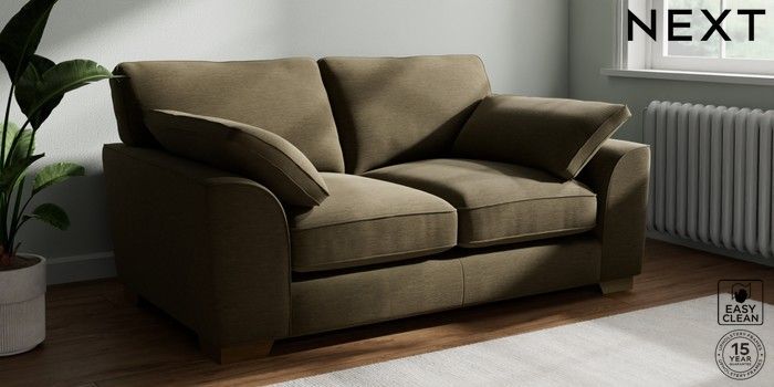 7.3.1 Buy Stamford Grand Relaxed Sit 2 Seater Sofa Fine Chenille Easy Clean Dark Moss Green Large Square Angle - Brushed Brass from the Seasons online shop Click here to use our website with more accessibility support, for example screen readers