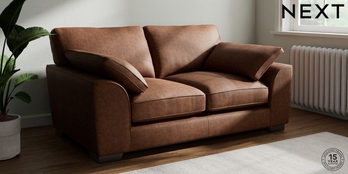 7.3.1 Buy Stamford Grand Relaxed Sit 2 Seater Sofa Monza Faux Leather Easy Clean Chestnut Brown Large Square Angle - Gunmetal from the Seasons online shop