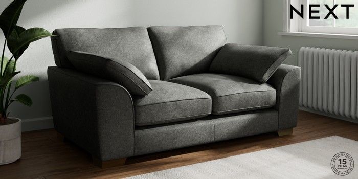 7.3.1 Buy Stamford Grand Relaxed Sit 2 Seater Sofa Plush Chenille Dark Grey Large Square Angle - Brushed Brass from the Seasons online shop Click here to use our website with more accessibility support, for example screen readers