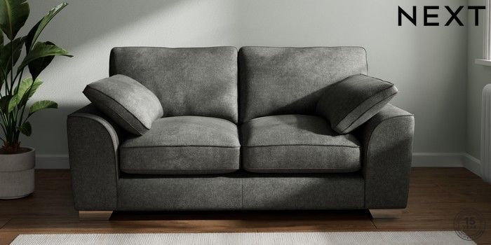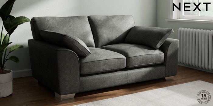 7.3.1 Buy Stamford Grand Relaxed Sit 2 Seater Sofa Plush Chenille Dark Grey Large Square Angle - Chrome Metal from the Seasons online shop Click here to use our website with more accessibility support, for example screen readers
