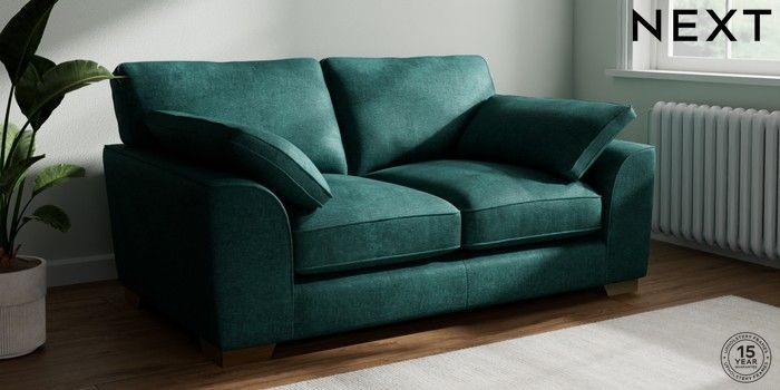 7.3.1 Buy Stamford Grand Relaxed Sit 2 Seater Sofa Plush Chenille Dark Teal Green Large Square Angle - Brushed Brass from the Seasons online shop Click here to use our website with more accessibility support, for example screen readers