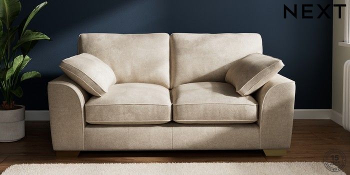 7.3.1 Buy Stamford Grand Relaxed Sit 2 Seater Sofa Plush Chenille Light Natural Large Square Angle - Brushed Brass from the Seasons online shop Click here to use our website with more accessibility support, for example screen readers