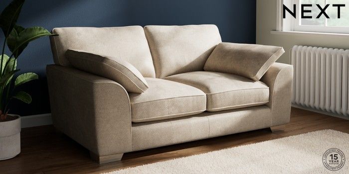 7.3.1 Buy Stamford Grand Relaxed Sit 2 Seater Sofa Plush Chenille Light Natural Large Square Angle - Chrome Metal from the Seasons online shop Click here to use our website with more accessibility support, for example screen readers