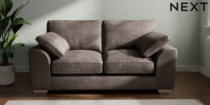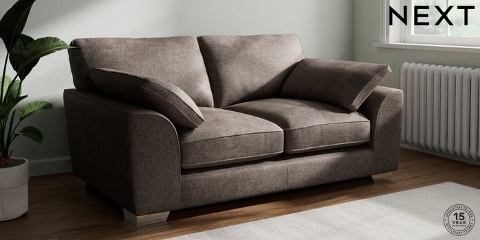 7.3.1 Buy Stamford Grand Relaxed Sit 2 Seater Sofa Plush Chenille Mink Brown Large Square Angle - Chrome Metal from the Seasons online shop Click here to use our website with more accessibility support, for example screen readers
