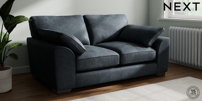 7.3.1 Buy Stamford Grand Relaxed Sit 2 Seater Sofa Plush Chenille Slate Blue Large Square Angle - Gunmetal from the Seasons online shop Click here to use our website with more accessibility support, for example screen readers