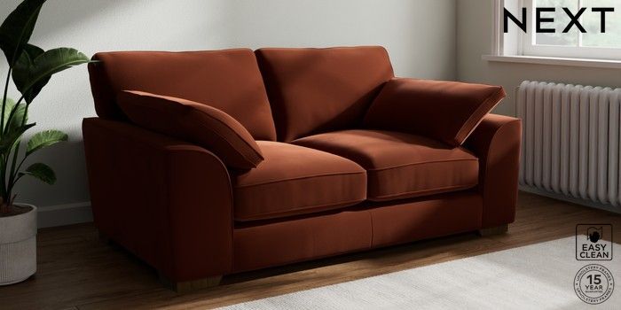 7.3.1 Buy Stamford Grand Relaxed Sit 2 Seater Sofa Plush Velvet Easy Clean Ginger Orange Large Square Angle - Mid from the Seasons online shop Click here to use our website with more accessibility support, for example screen readers