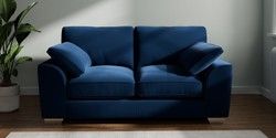 7.3.1 Buy Stamford Grand Relaxed Sit 2 Seater Sofa Plush Velvet Easy Clean Navy Blue Large Square Angle - Chrome Metal from the Seasons online shop