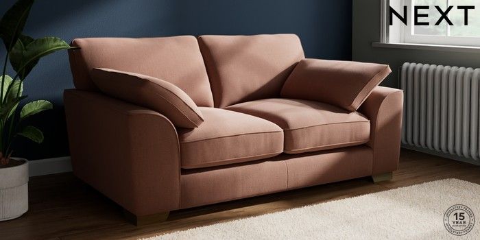 7.3.1 Buy Stamford Grand Relaxed Sit 2 Seater Sofa Relaxed Linen Look Light Rust Brown Large Square Angle - Brushed Brass from the Seasons online shop Click here to use our website with more accessibility support, for example screen readers
