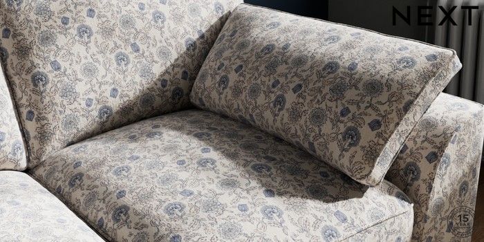 7.3.1 Buy Stamford Grand Relaxed Sit 2 Seater Sofa Relaxed Linen Look Print Woodblock Floral Blue Large Square Angle - Dark from the Seasons online shop