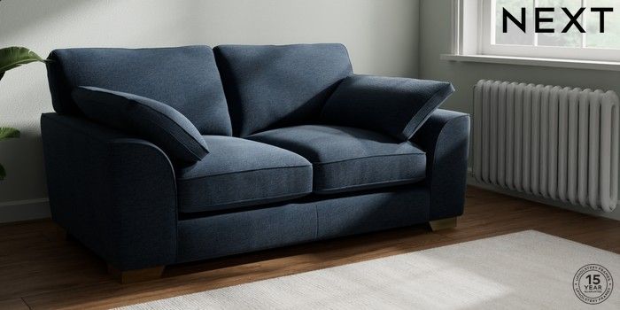 7.3.1 Buy Stamford Grand Relaxed Sit 2 Seater Sofa Ripple Chenille Dark Blue Large Square Angle - Brushed Brass from the Seasons online shop Click here to use our website with more accessibility support, for example screen readers