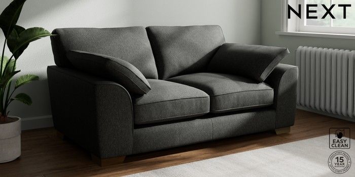 7.3.1 Buy Stamford Grand Relaxed Sit 2 Seater Sofa Tweedy Blend Easy Clean Charcoal Grey Large Square Angle - Brushed Brass from the Seasons online shop Click here to use our website with more accessibility support, for example screen readers