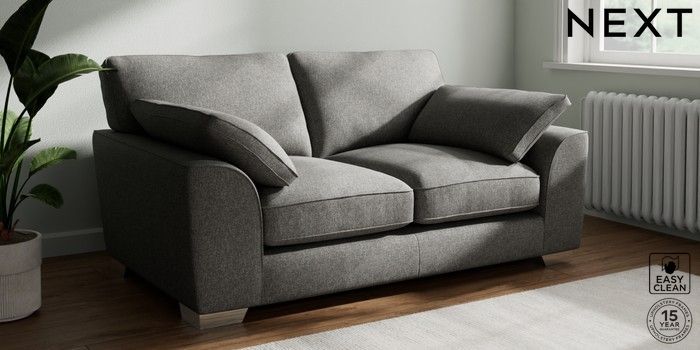 7.3.1 Buy Stamford Grand Relaxed Sit 2 Seater Sofa Tweedy Blend Easy Clean Dark Grey Large Square Angle - Chrome Metal from the Seasons online shop Click here to use our website with more accessibility support, for example screen readers