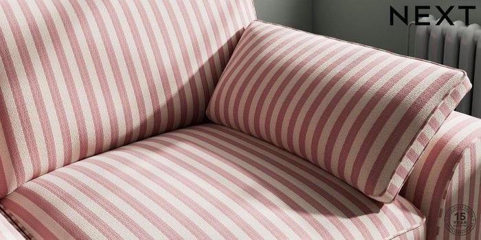 7.3.1 Buy Stamford Grand Relaxed Sit 3 Seater Sofa Bold Chenille Stripe Dark Pink Large Square Angle - Brushed Brass from the Seasons online shop Click here to use our website with more accessibility support, for example screen readers