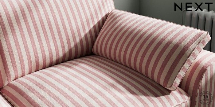 7.3.1 Buy Stamford Grand Relaxed Sit 3 Seater Sofa Bold Chenille Stripe Dark Pink Large Square Angle - Chrome Metal from the Seasons online shop Click here to use our website with more accessibility support, for example screen readers