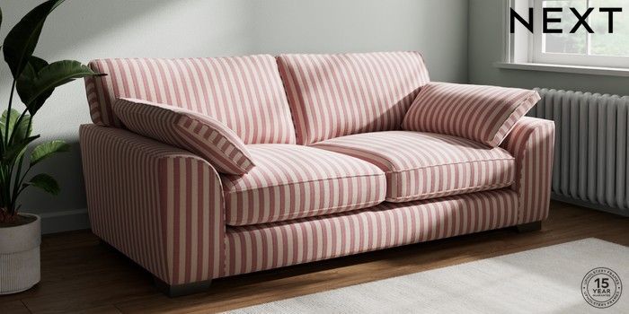 7.3.1 Buy Stamford Grand Relaxed Sit 3 Seater Sofa Bold Chenille Stripe Dark Pink Large Square Angle - Gunmetal from the Seasons online shop Click here to use our website with more accessibility support, for example screen readers