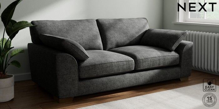 7.3.1 Buy Stamford Grand Relaxed Sit 3 Seater Sofa Boucle Weave Easy Clean Charcoal Grey Large Square Angle - Brushed Brass from the Seasons online shop Click here to use our website with more accessibility support, for example screen readers